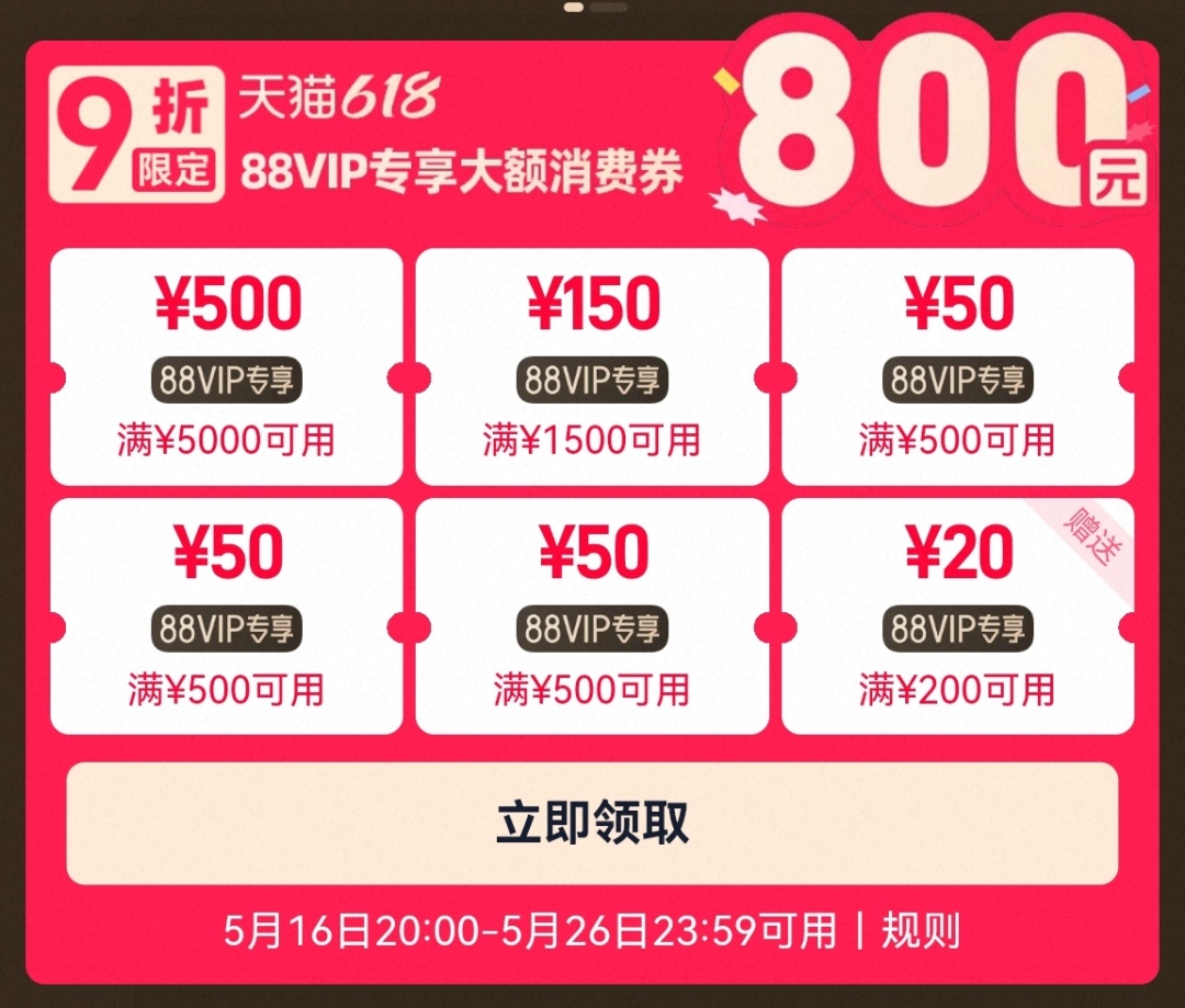 (88VIP大额券别忘记领取,据说今年消费券史无前例加量)