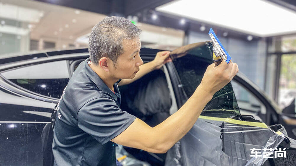 特斯拉modelY黑色施工LLumar龙膜隔热膜畅悦80+35流程: