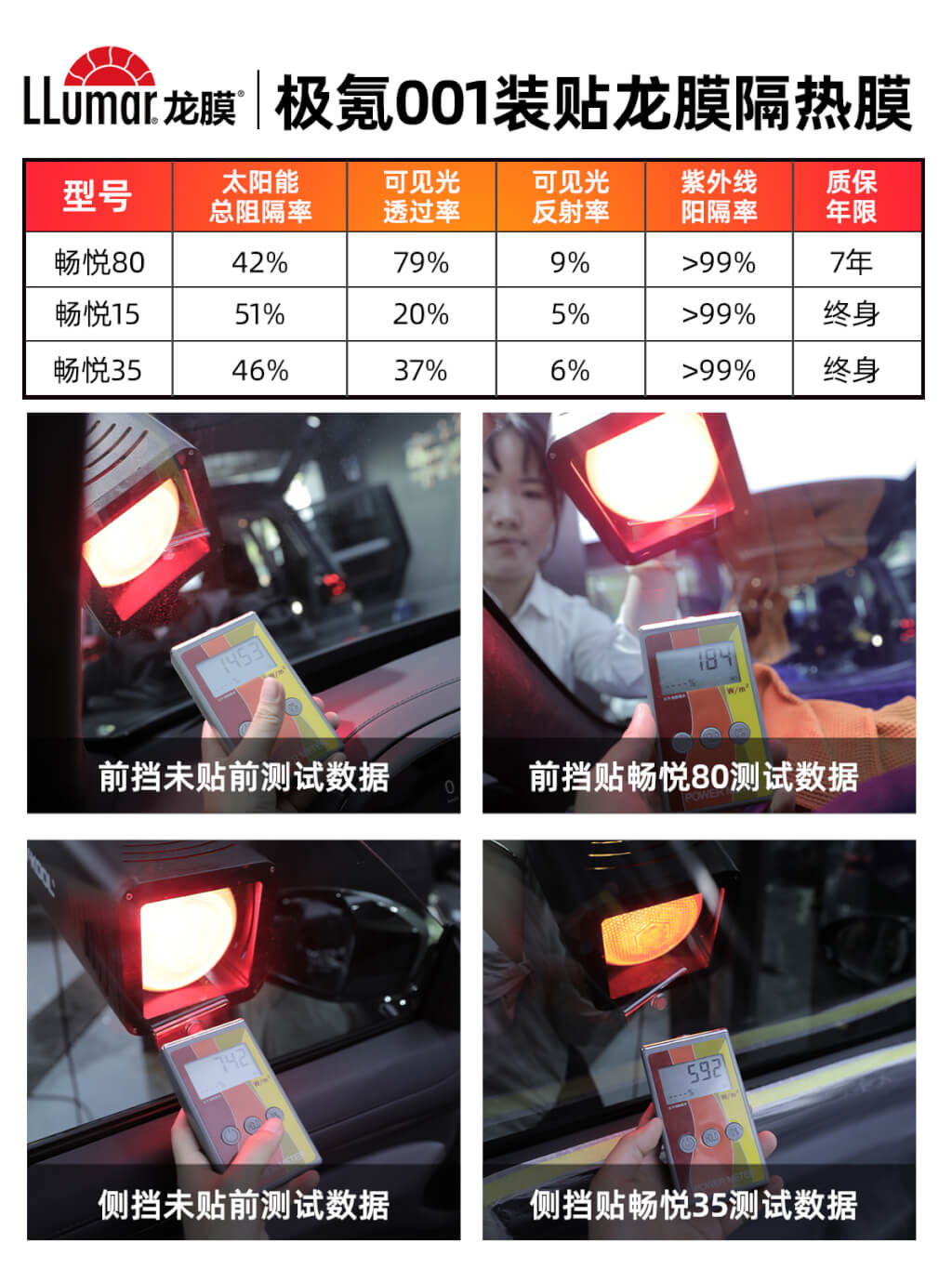 极氪001装贴龙膜畅悦80+侧后挡畅悦35/15玻璃膜实车案例