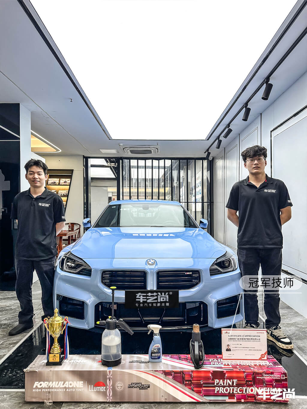 蓝色宝马m2施工龙膜G2plus隐形车衣案例