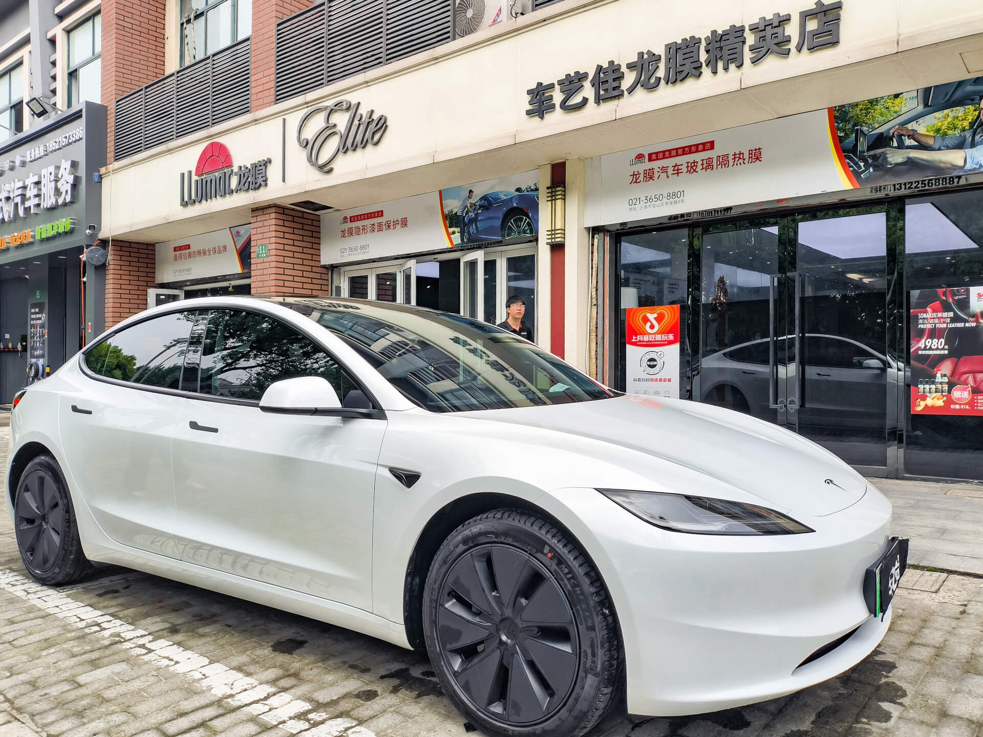 特斯拉Model 3施工龙膜前挡畅悦80+侧后挡畅悦35/15效果