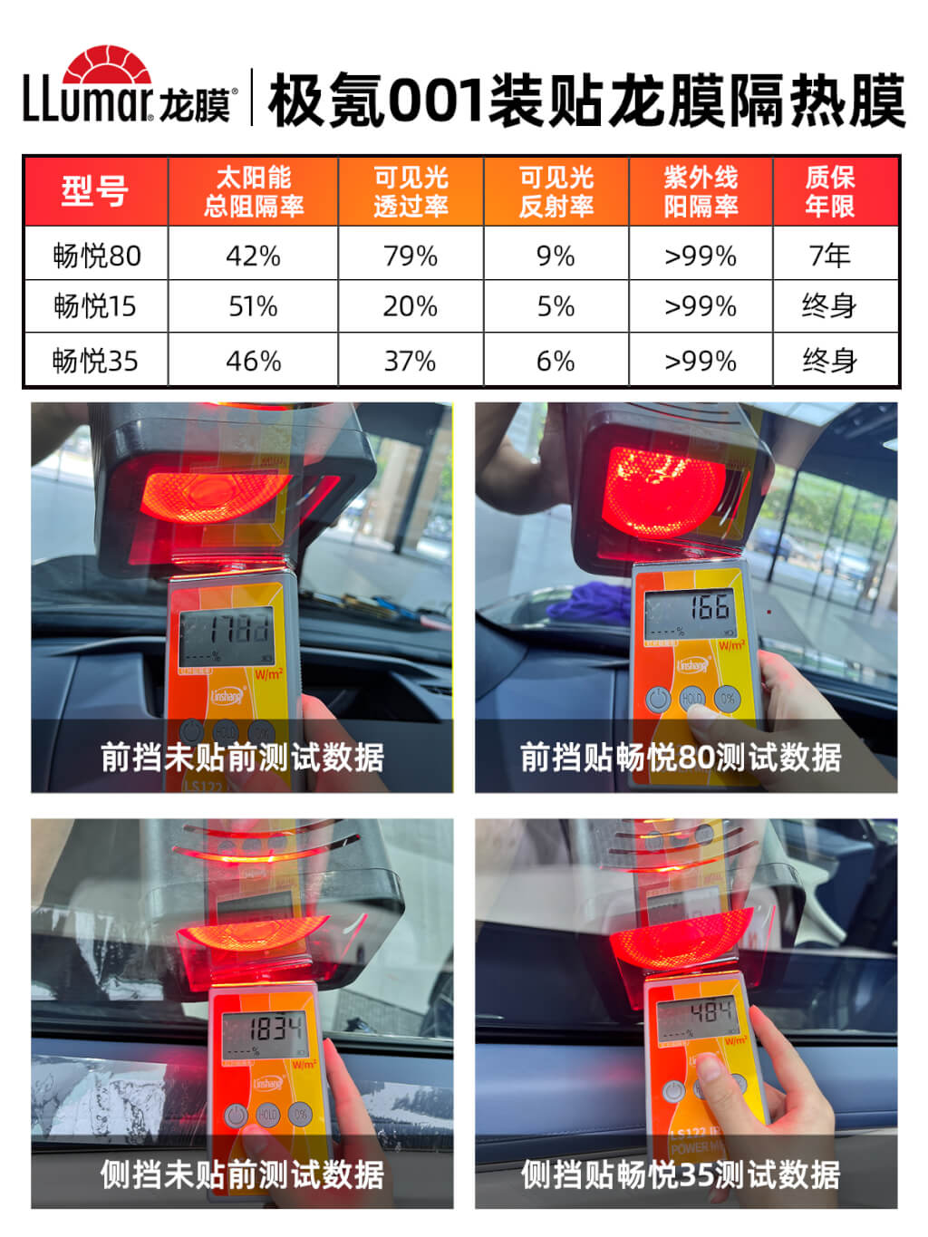 极氪001采用"猎装车"的造型,结合了SUV和轿车的特点,不仅实用,看起来也十分有个性;凭借其创新的设计、卓越的性能和智能化的配置,成为市场上一款颇具竞争力的高端智能电动车型。再选择一款性能优秀的隔热膜进行隔热防晒才算是锦上添花,今天就来看看这辆极氪001贴上龙膜畅悦系列隔热膜的效果吧!