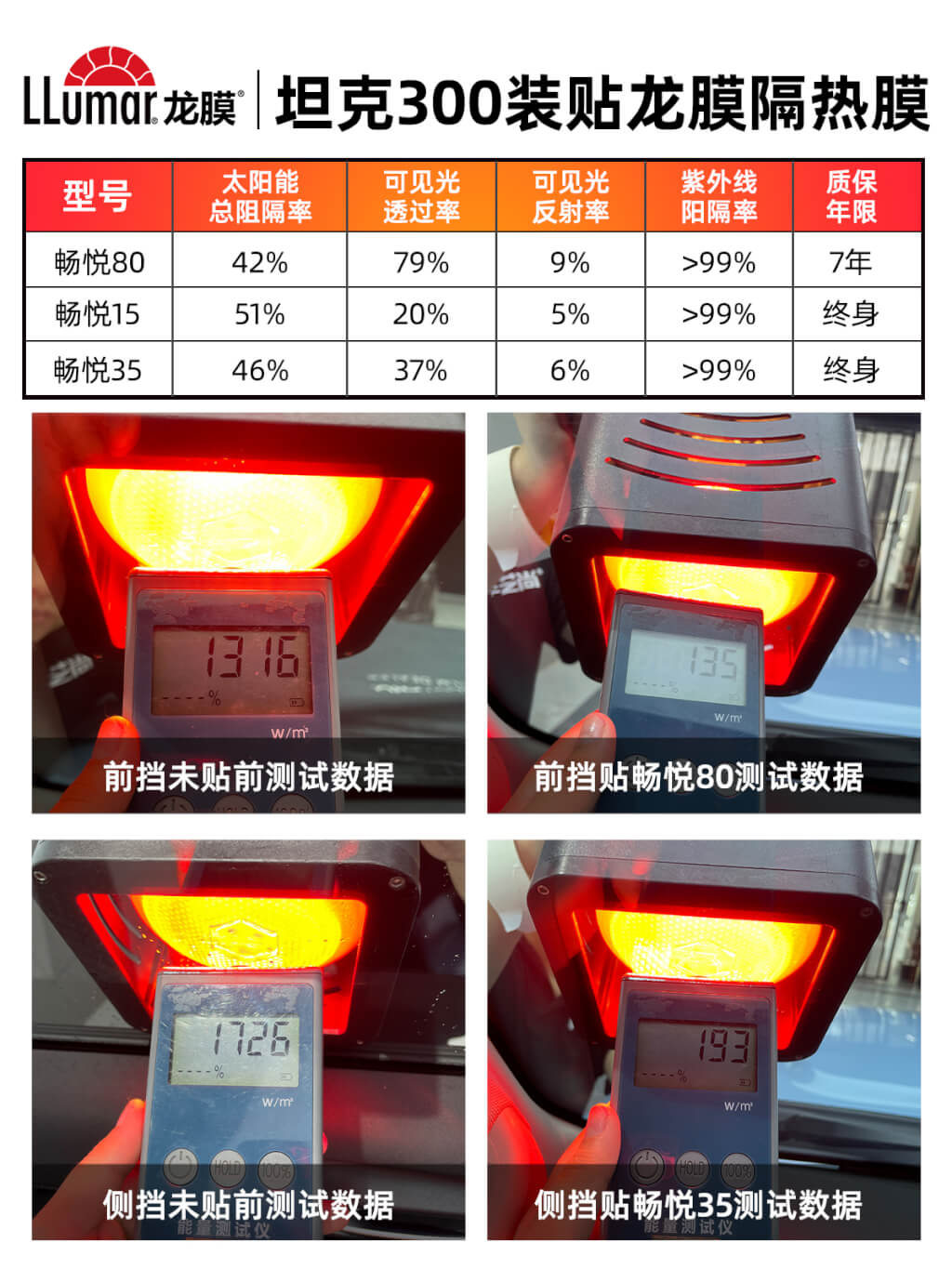 蓝色坦克300装贴前挡畅悦80+侧后挡畅悦35/15隔热膜
