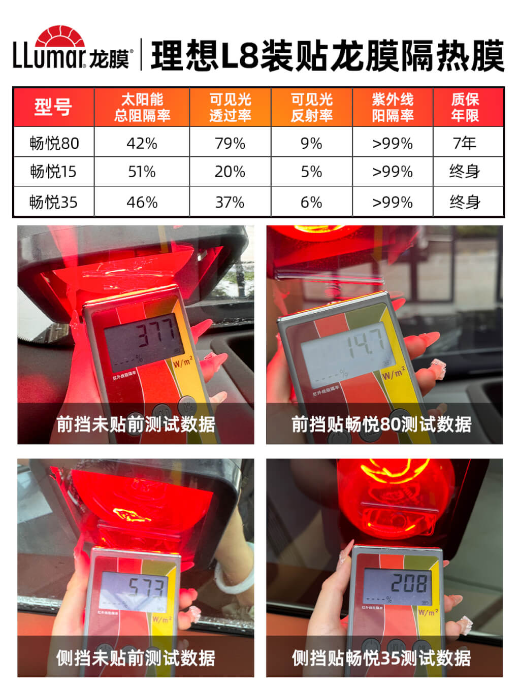理想L8 施工龙膜畅悦80+畅悦35/15玻璃膜