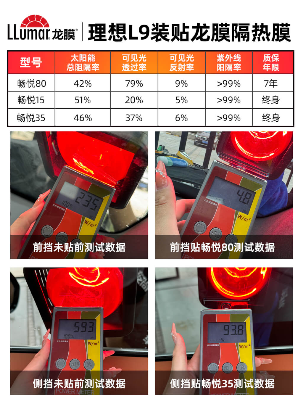 理想L9 施工龙膜畅悦80+畅悦35/15玻璃膜
