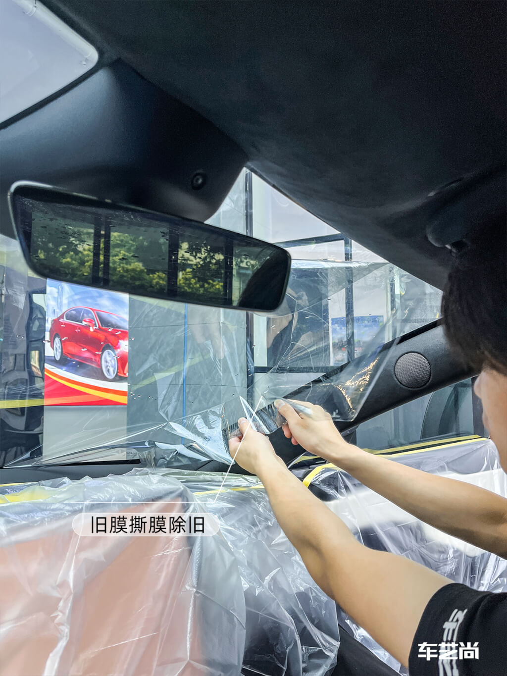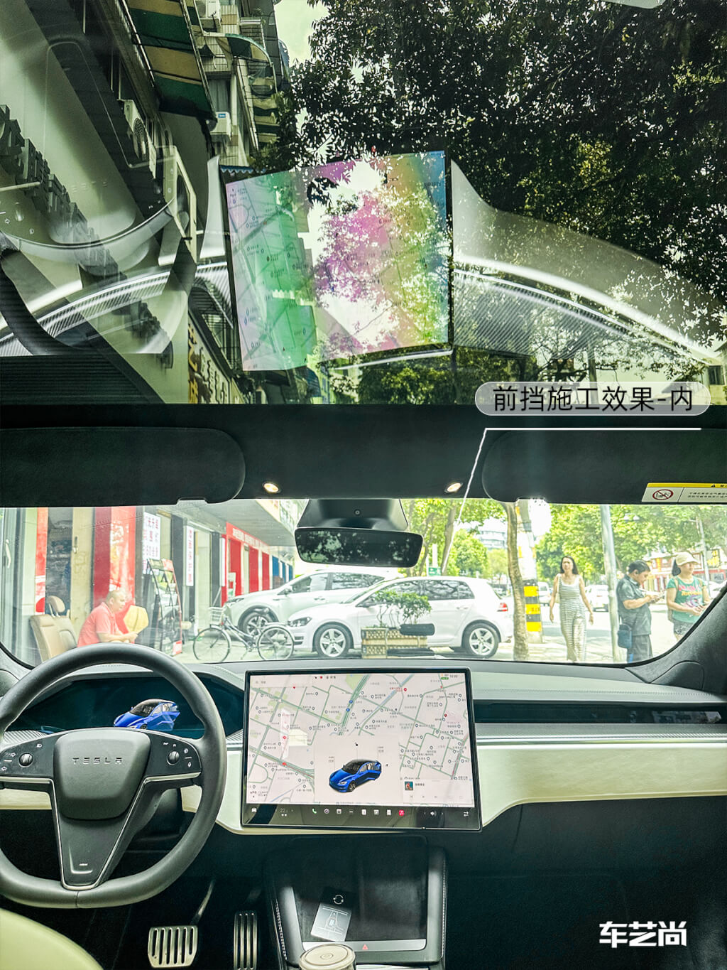 特斯拉modelS 施工龙膜后羿70+后羿15/30/50玻璃膜