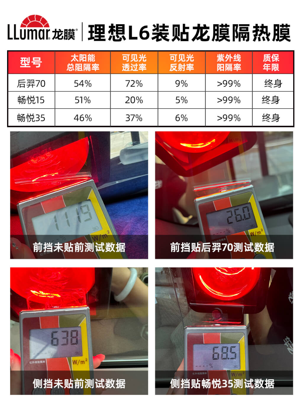 理想L6贴前挡后羿70+侧后挡畅悦35龙膜隔热膜
