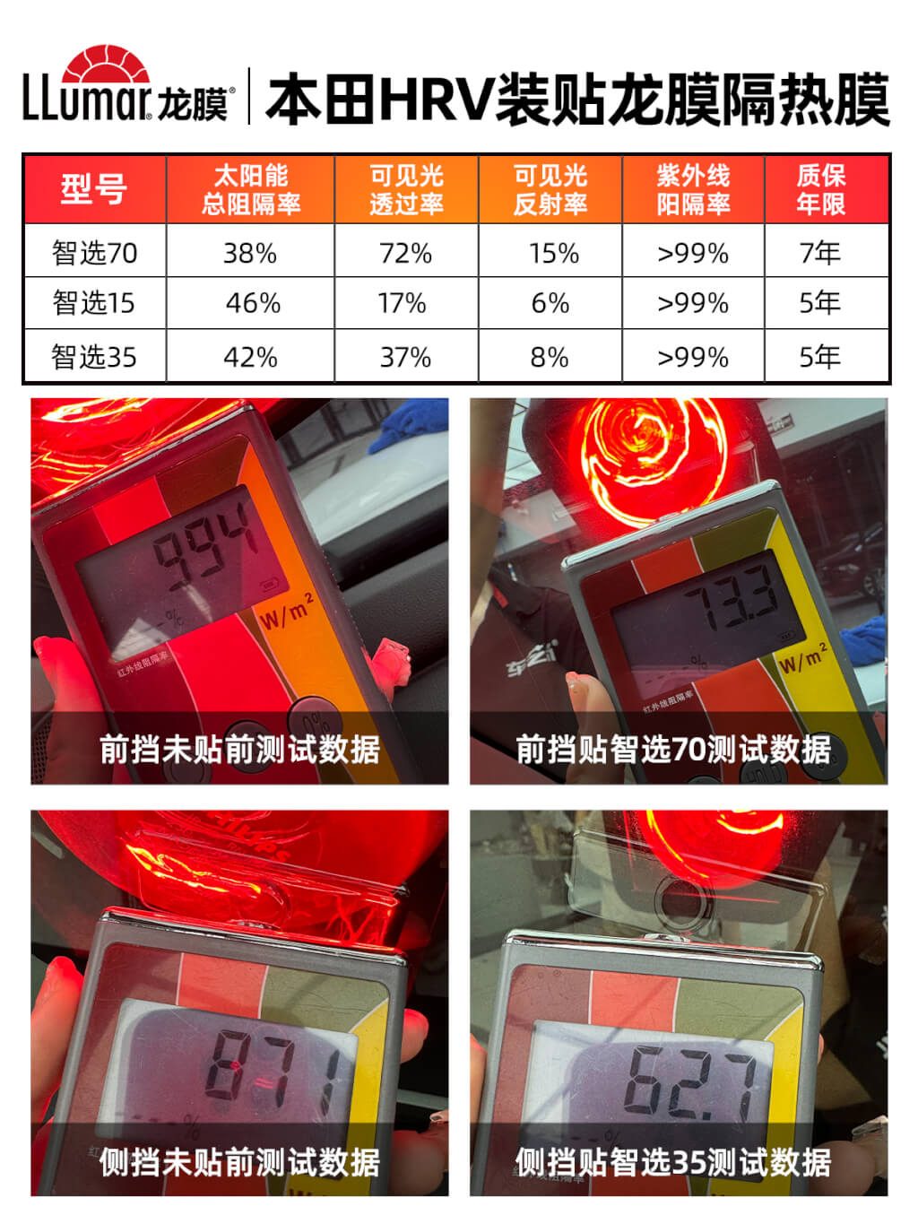 本田HRV施工龙膜智选70+智选35/15玻璃膜