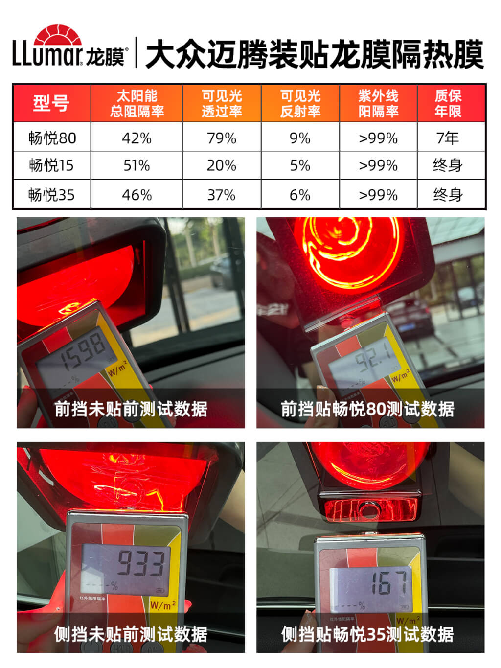 大众迈腾 施工龙膜畅悦80+畅悦35/15隔热膜