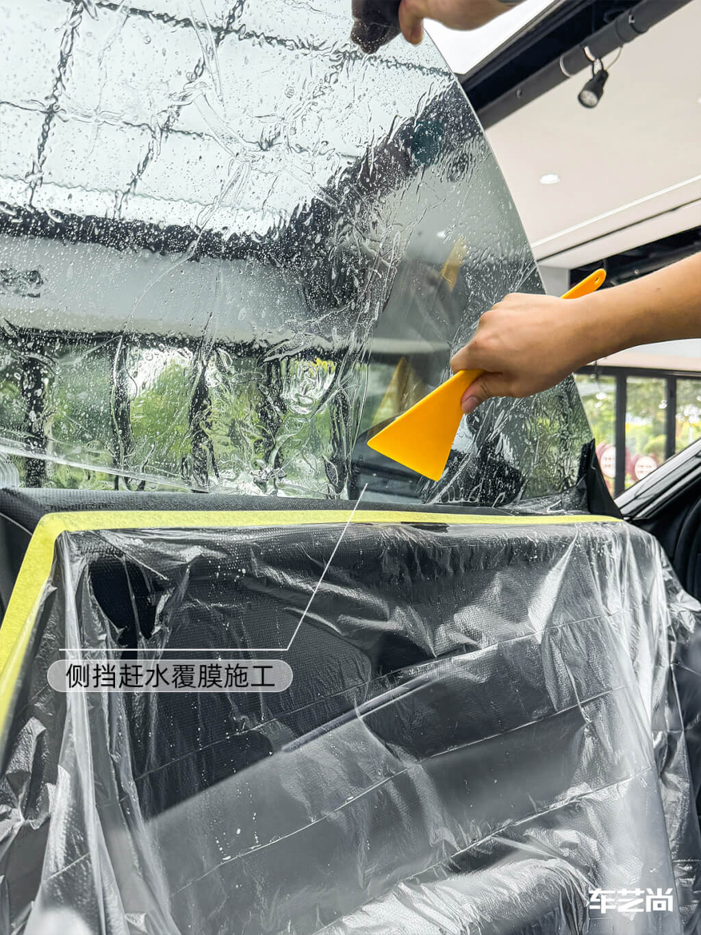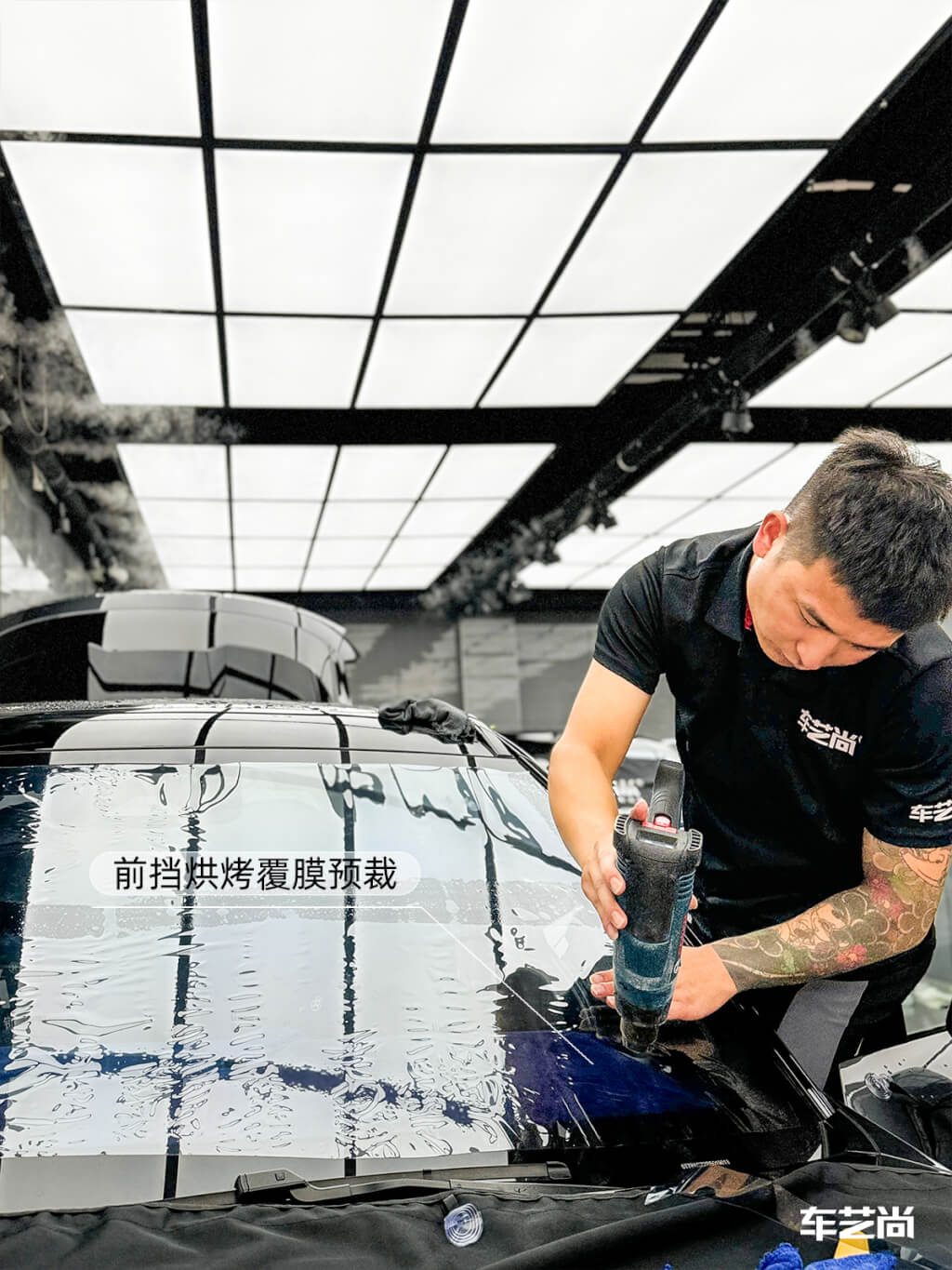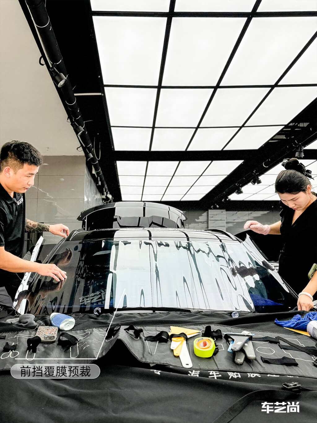 领克08施工龙膜畅悦蓝光75+畅悦蓝光35/15玻璃膜过程: