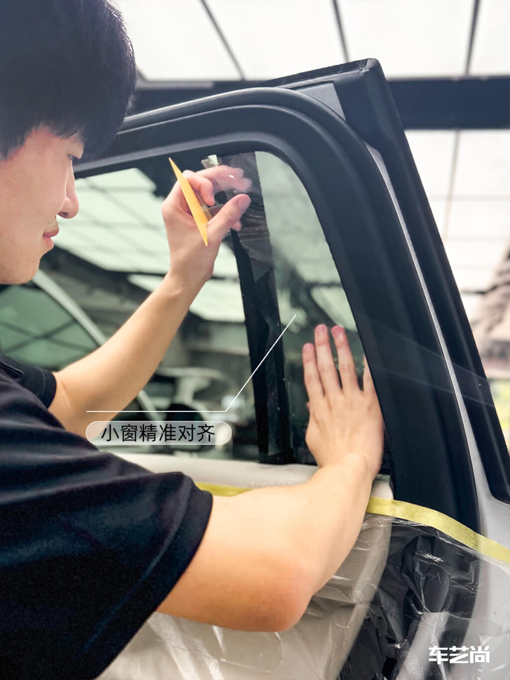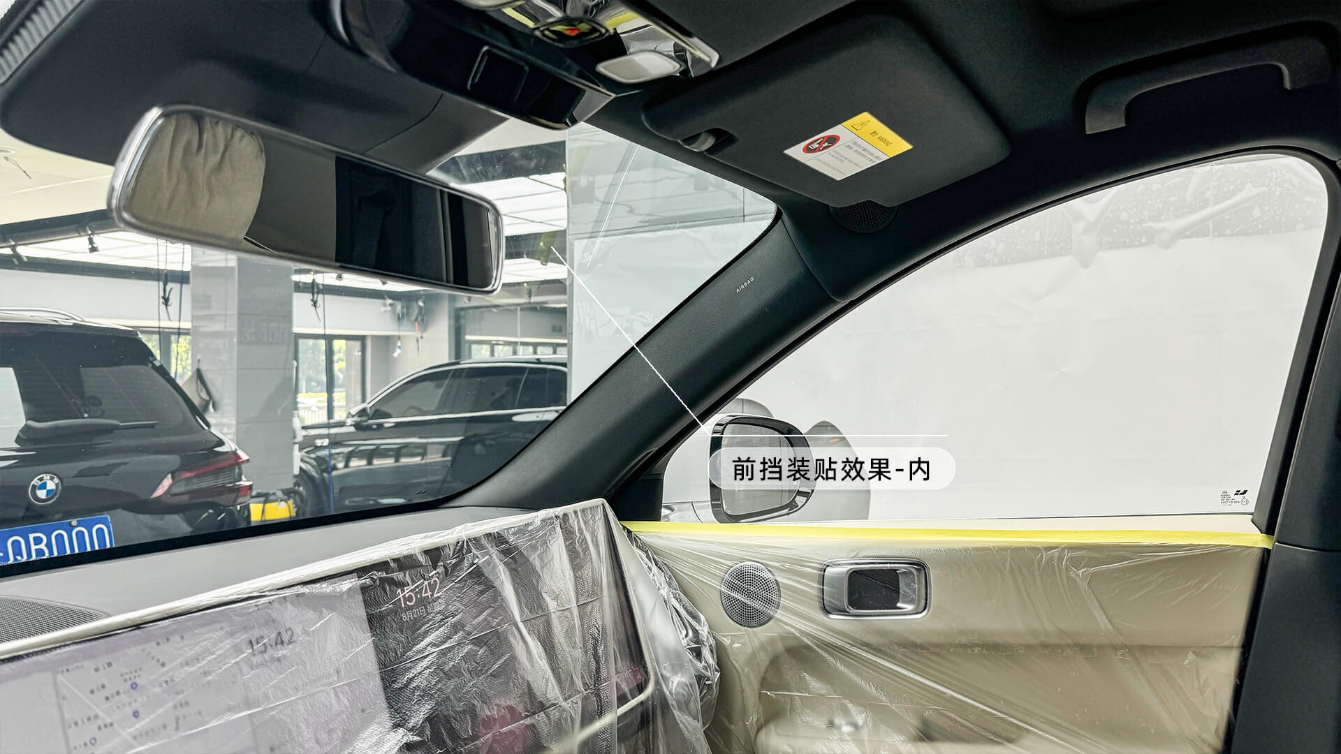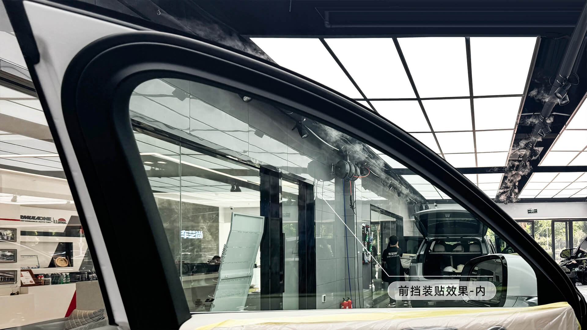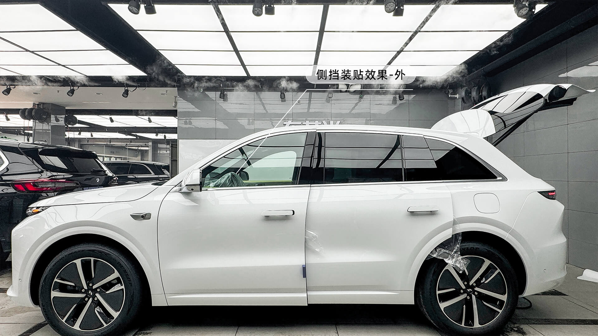 理想L6施工龙膜畅悦35/15隔热膜过程:
