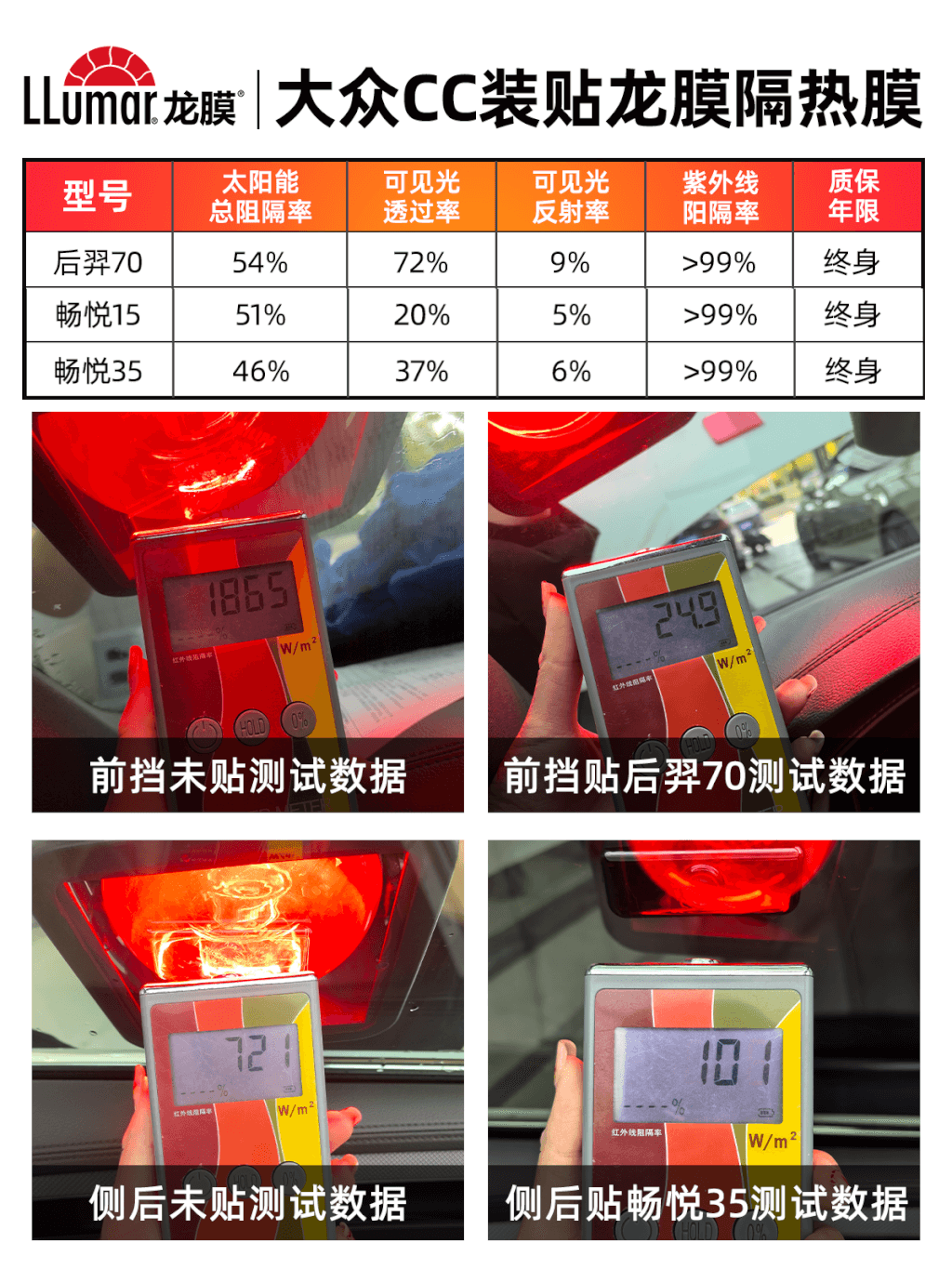 大众CC施工龙膜前挡后羿70+侧后挡畅悦35/15隔热膜