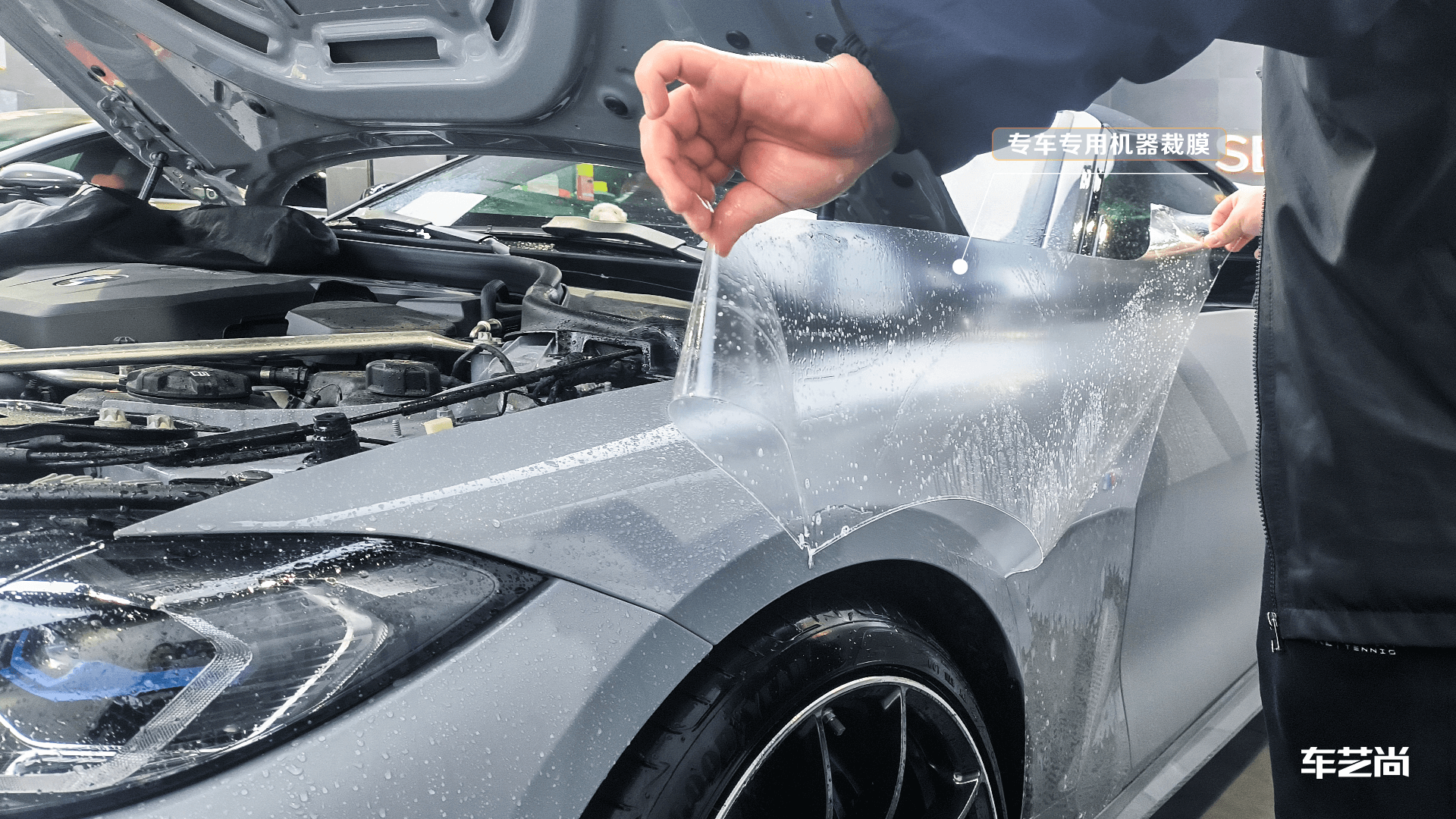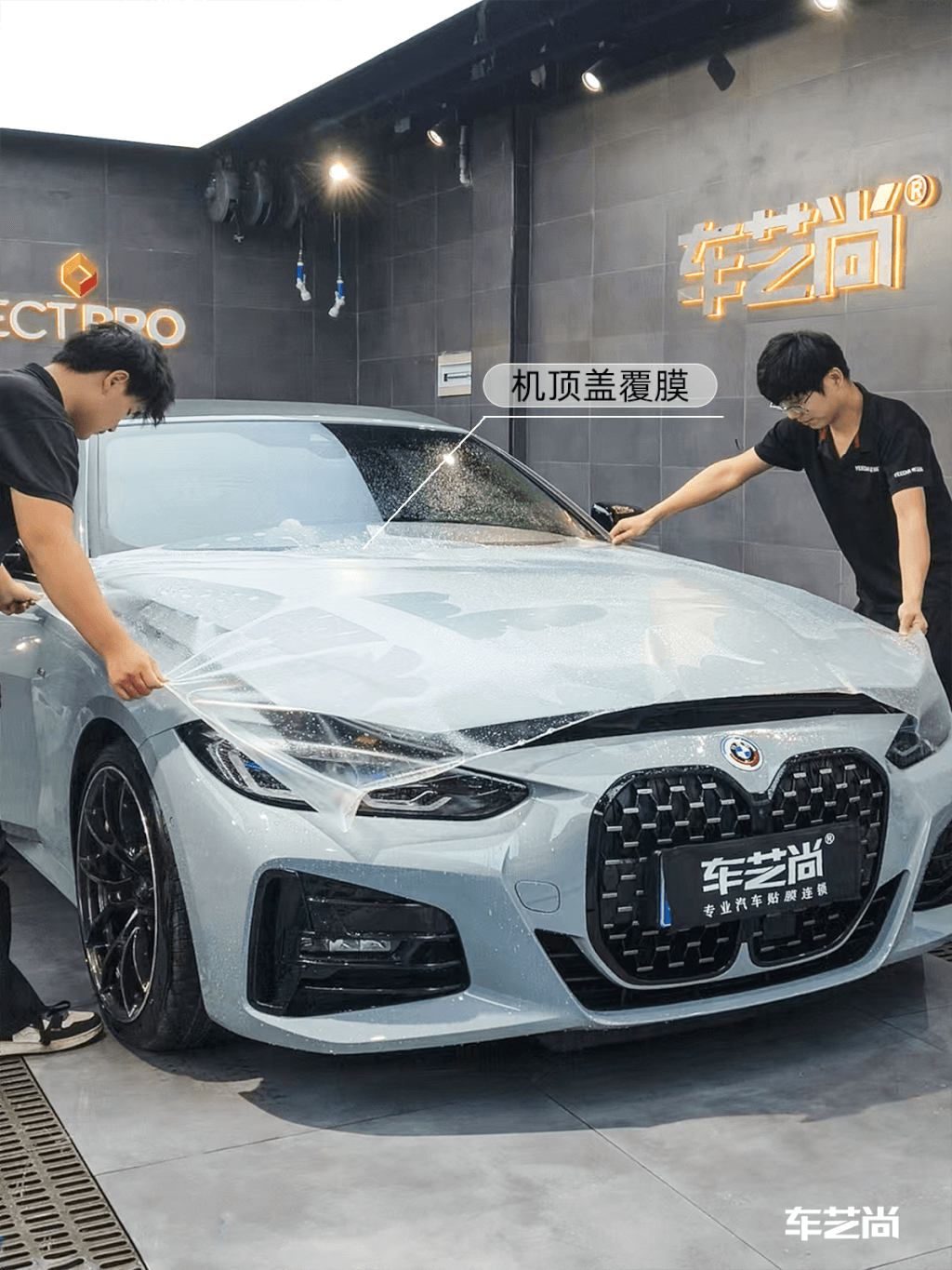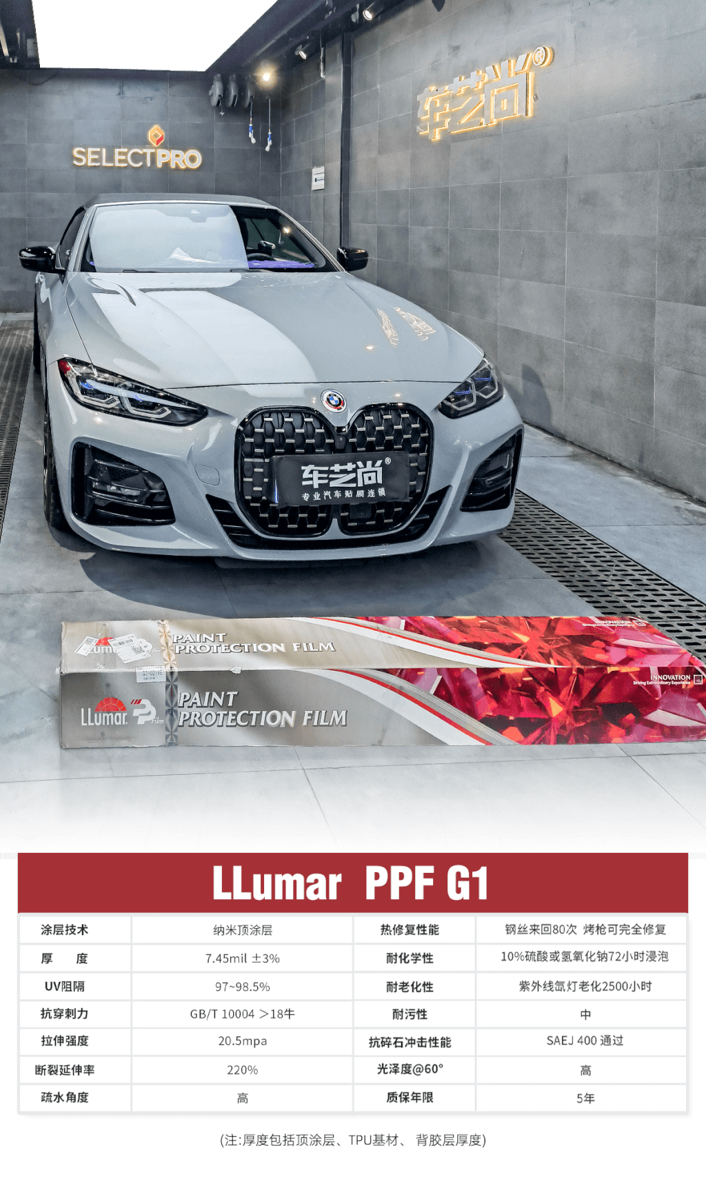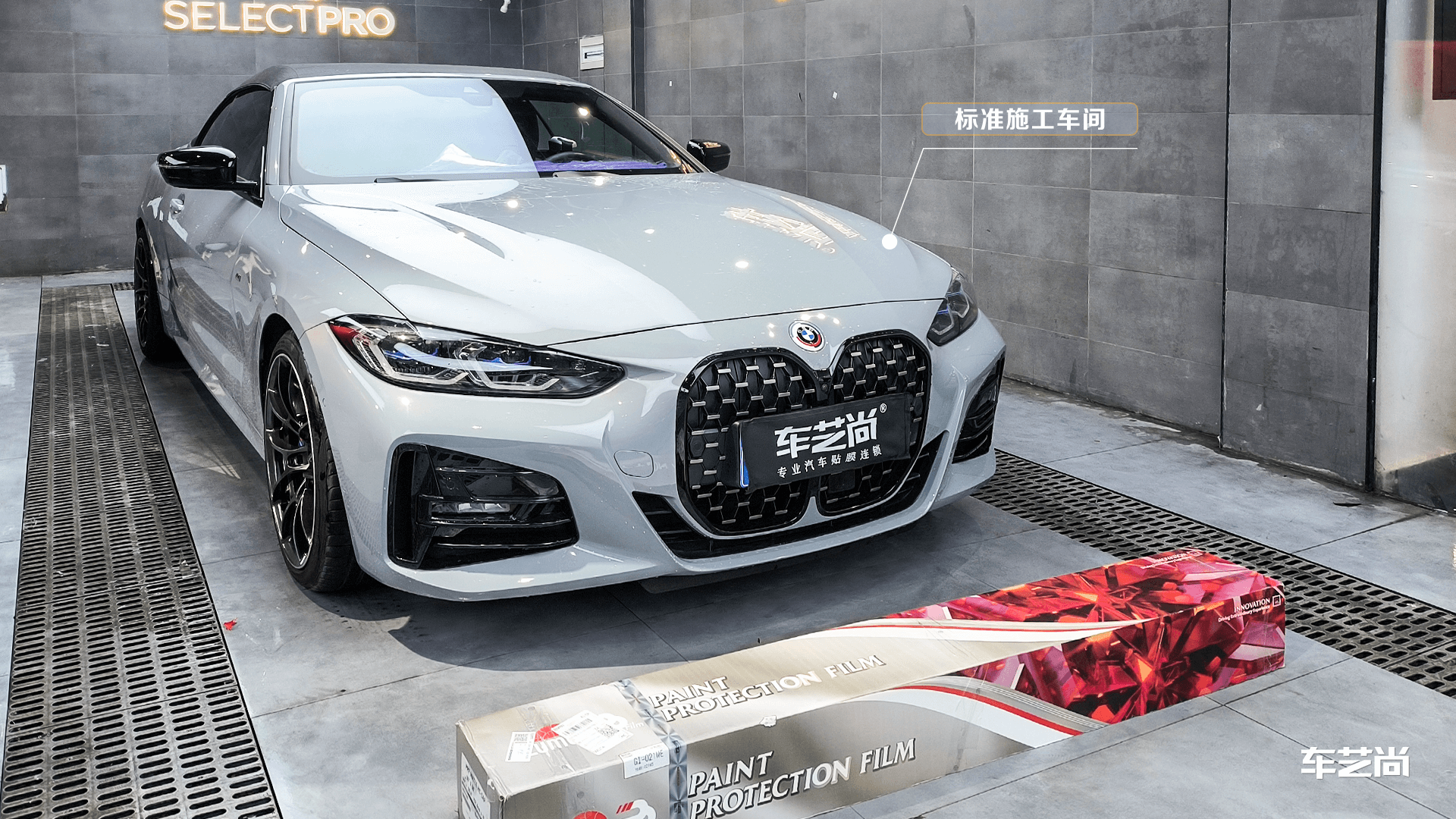 宝马4系施工龙膜G1哑光隐形车衣过程: