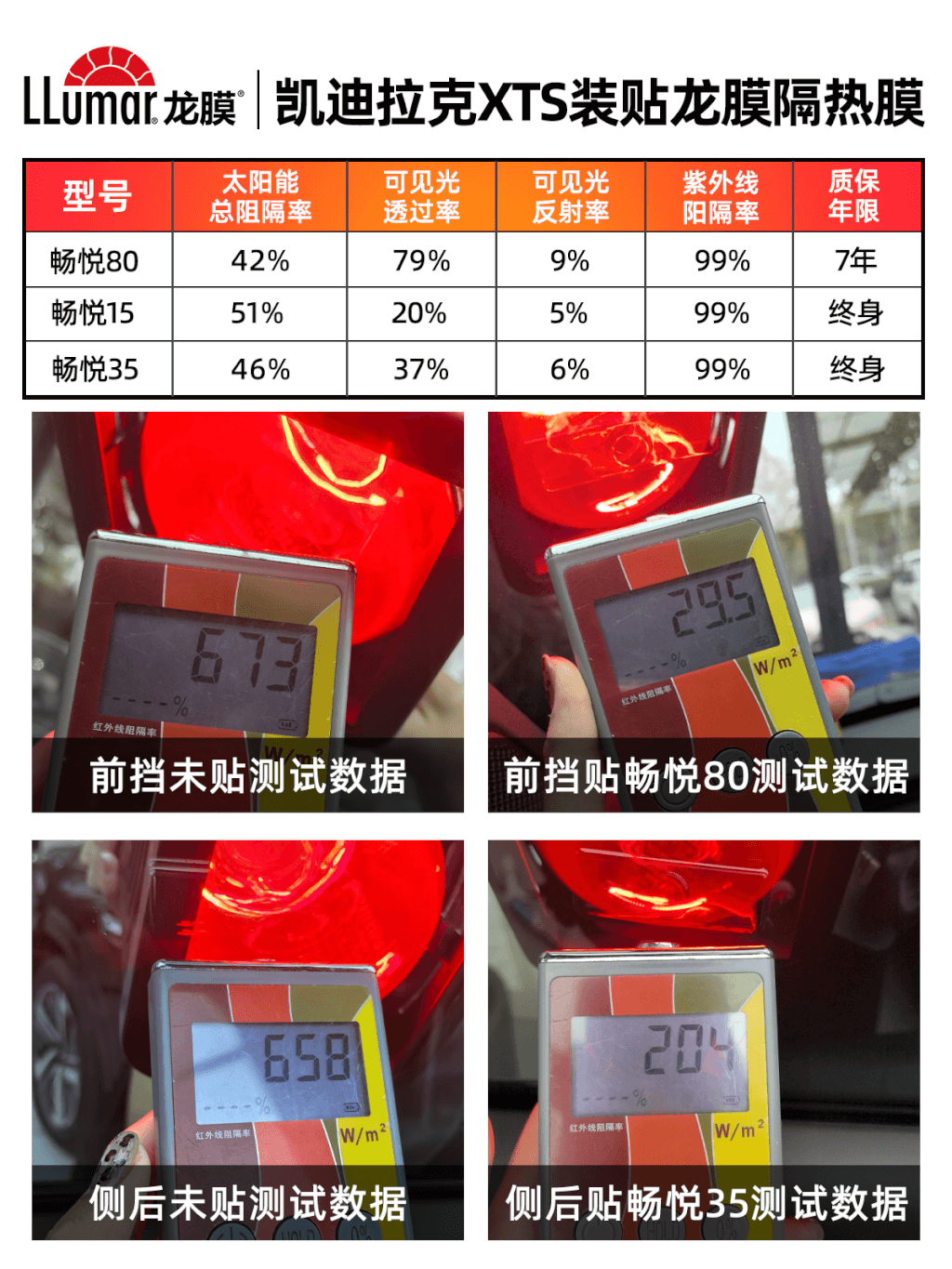 凯迪拉克XTS施工龙膜畅悦80+畅悦35/15隔热膜: