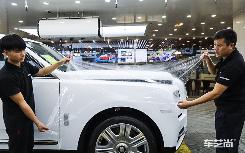 好产品自然就会有人用,接下来提供一个真实案例,白色劳斯莱斯贴龙膜G2,在车艺佳龙膜全球旗舰店进行施工,施工过程和最终效果图立刻奉上。