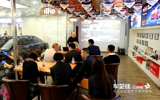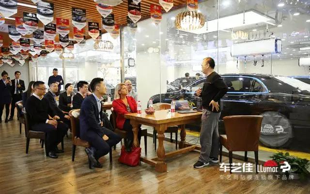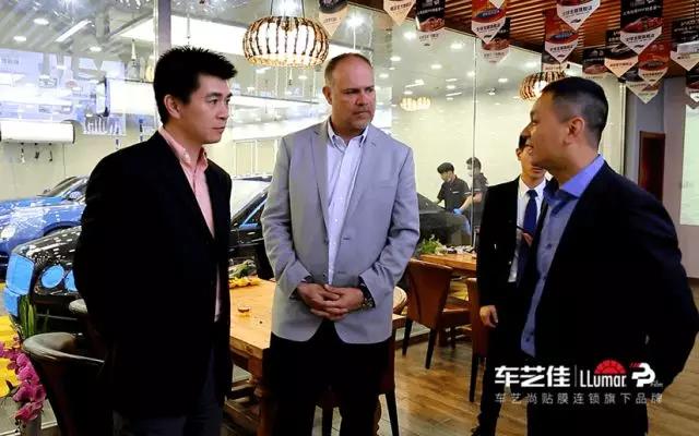 此次随同Travis Smith到来的,还有伊士曼亚太区总裁张波,龙膜PF中国区负责人Frank等,一行人莅临车艺佳龙膜全球旗舰店进行视察指导。车艺尚集团董事长范保良、车艺佳龙膜商务部负责人程进城等车艺尚汽车贴膜连锁主要领导人进行了接待。如图: