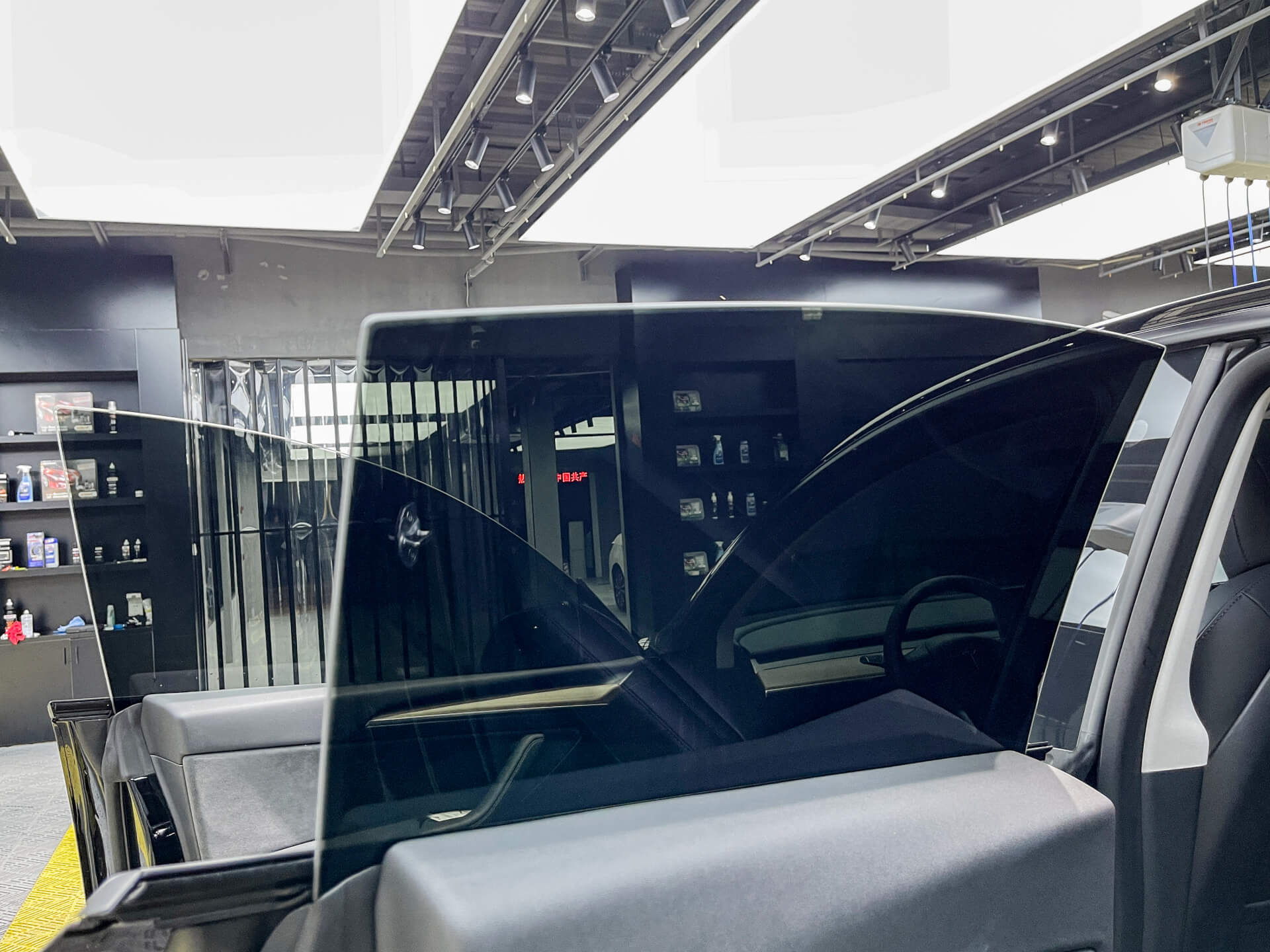 后侧窗玻璃膜主要关注防紫外线和隐私性能,选择时需要考虑隐私性,选择颜色较深的、透光率较低的膜将大大增加后排乘客私密性,提升整车尊贵质感。