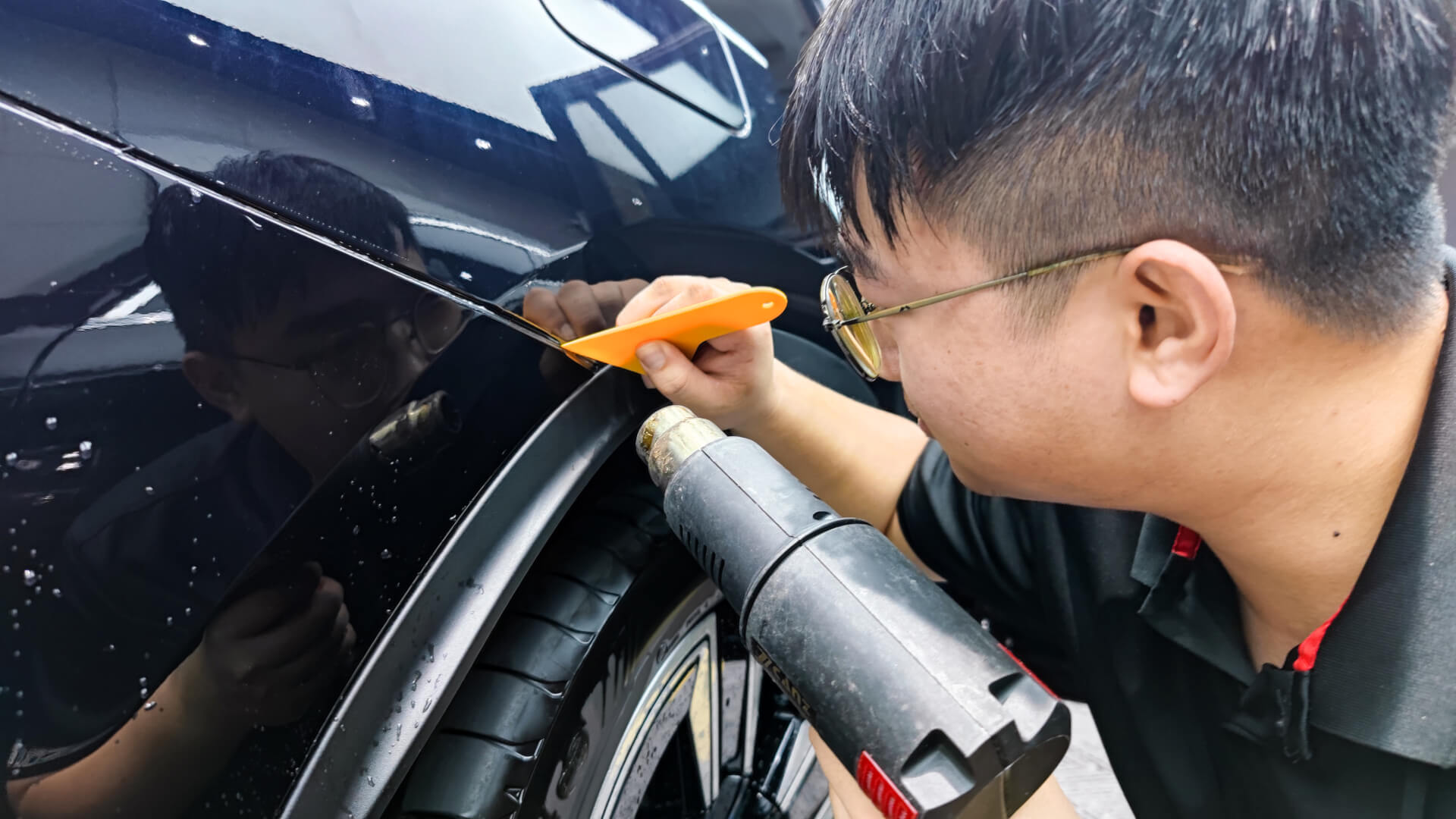 大品牌隐形车衣都有自己的品牌授权店,专业的无尘车间、施工工具以及专业施工技师团队,施工质量有保障。