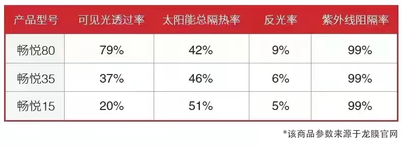龙膜隔热膜是龙膜家族中的明星产品之一,其主打型号有三种,分别是:智选全车、畅悦全车、后羿与畅悦全车。这些型号的隔热性能都非常出色,可以有效地阻挡紫外线和红外线的侵入,同时降低车内温度,提高驾驶舒适度。