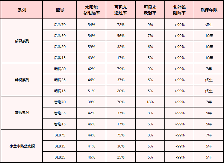 后羿:磁控溅射半金属半陶瓷膜,真含黄金旗舰级全效表现,隔热好、不易氧化、不易褪色,更耐高温。