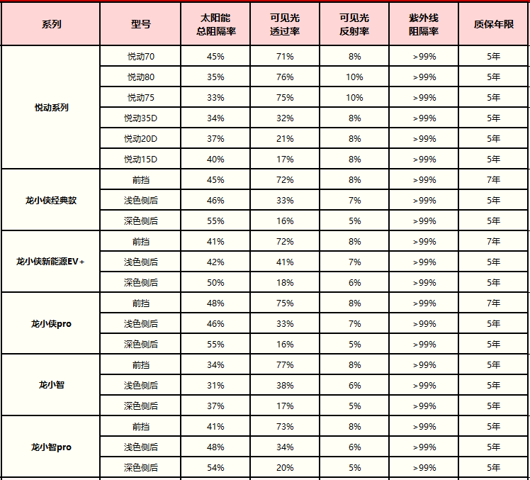 悦动:可阻隔99.9%紫外线,隔热效果好,有多款型号可选,精准匹配车主需求。