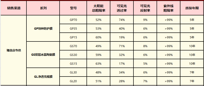 GL:净透亮视膜,纳米陶瓷,不阻隔信号,防晒隔热。