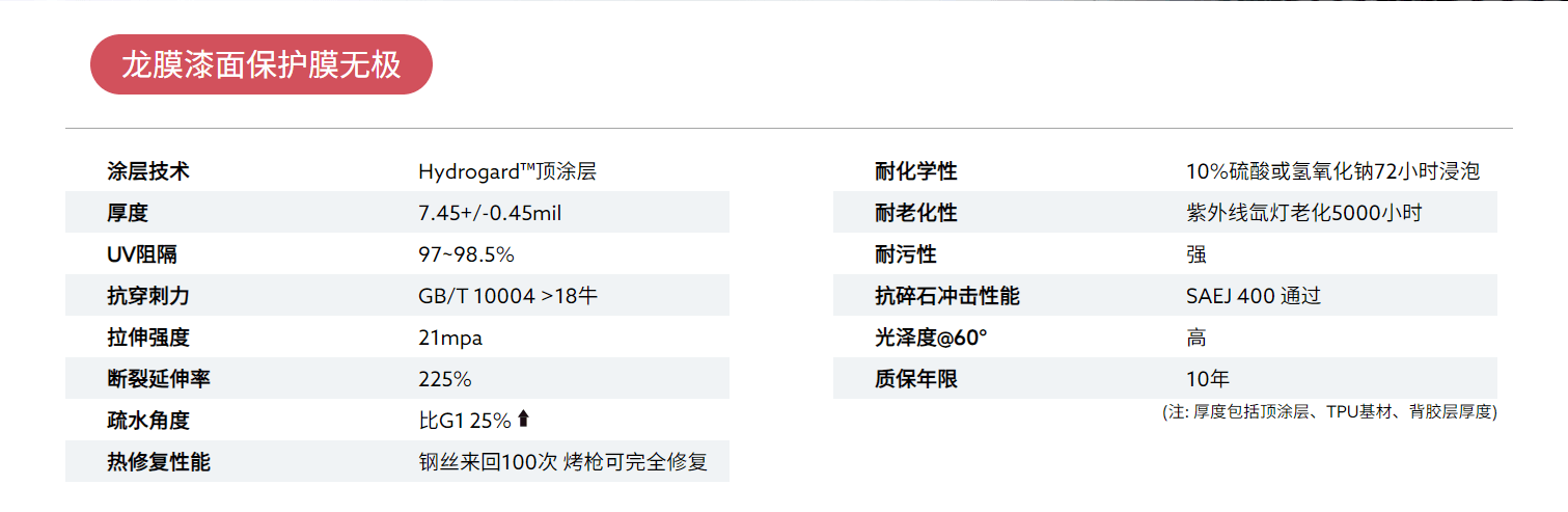 其次,在质保方面,龙膜G2的质保期比G1更长,长达10年之久。这足以证明龙膜对G2隐形车衣品质的自信,同时也让车主在购买时更加放心。在长达10年的质保期内,无论遇到什么问题,车主都可以得到龙膜的专业售后服务支持,让您的爱车始终保持最佳状态。