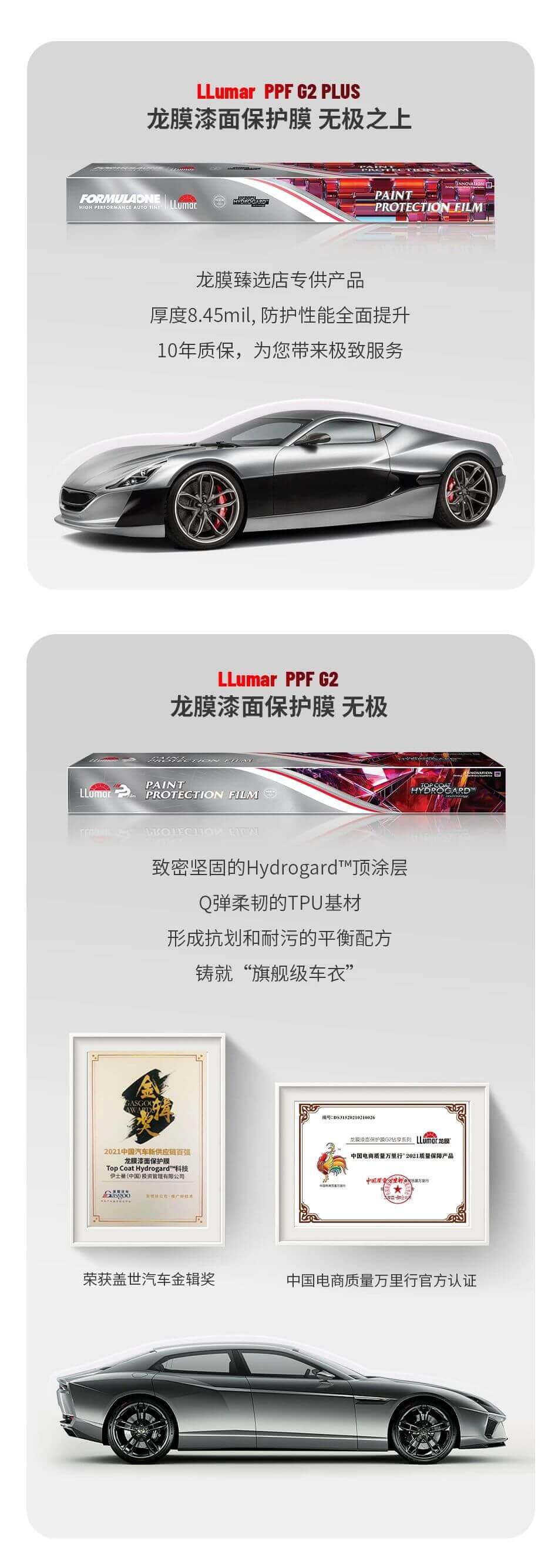 综上所述,龙膜G2隐形车衣凭借其卓越的性能、长久的质保和出色的疏水性能,成为了市场上备受推崇的汽车漆面保护产品。与龙膜G1相比,G2在多个方面都有明显的优势,能够为车主提供更加全面、有效的保护。虽然价格相对较高,但考虑到其能够为爱车带来的长期价值和保护效果,这样的投资无疑是值得的。如果您正在寻找一款高性能的汽车漆面保护产品,龙膜G2隐形车衣无疑是一个值得考虑的选择。