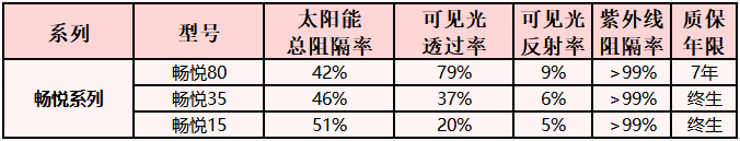 2、前挡畅悦80+侧后挡畅悦35/15,前挡质保7年,侧后挡终生质保;