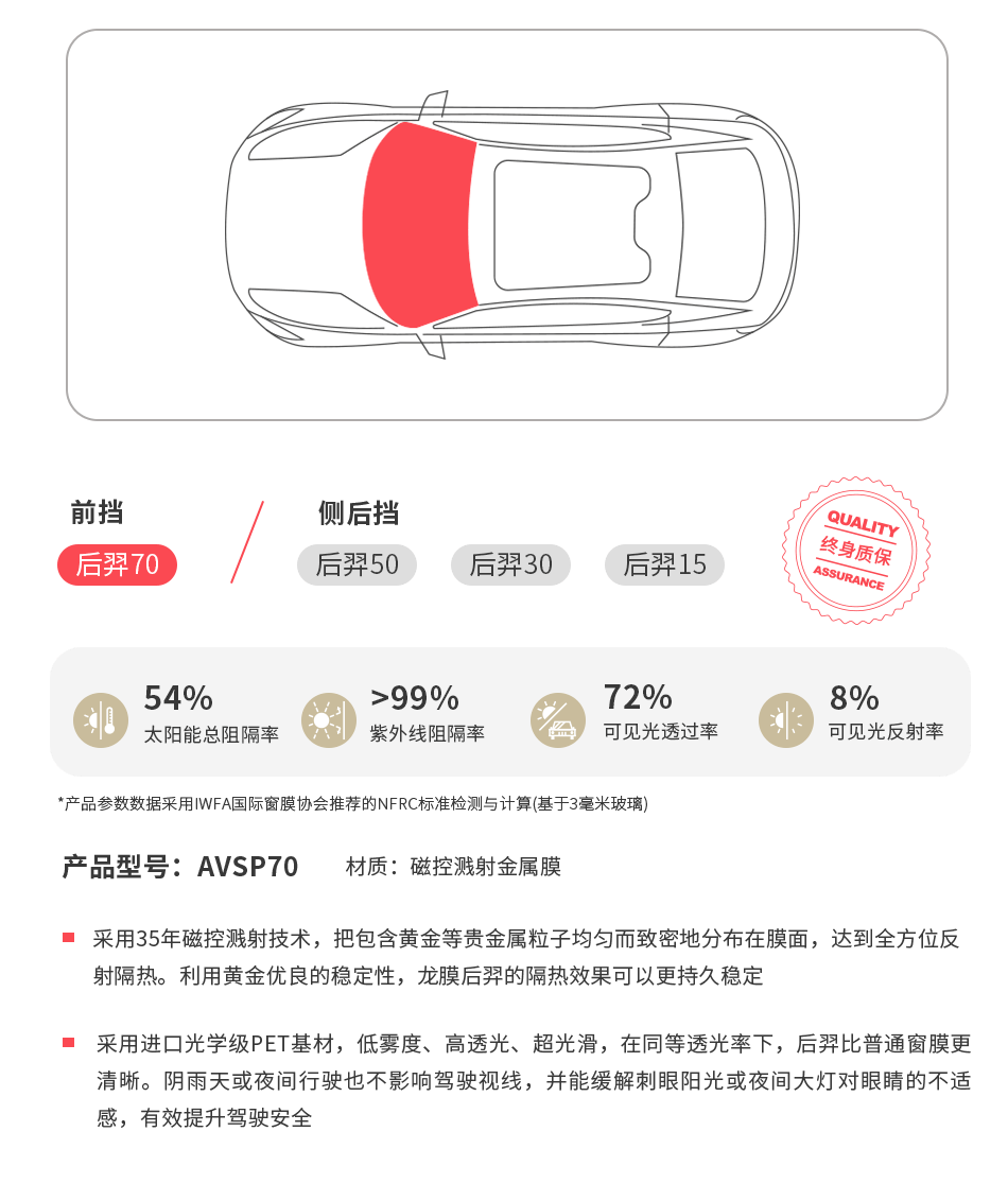 注意隔热率:隔热率是衡量隔热膜性能的重要指标。后羿系列作为龙膜最高端的半金属半陶瓷膜,其隔热率在51%~60%之间。