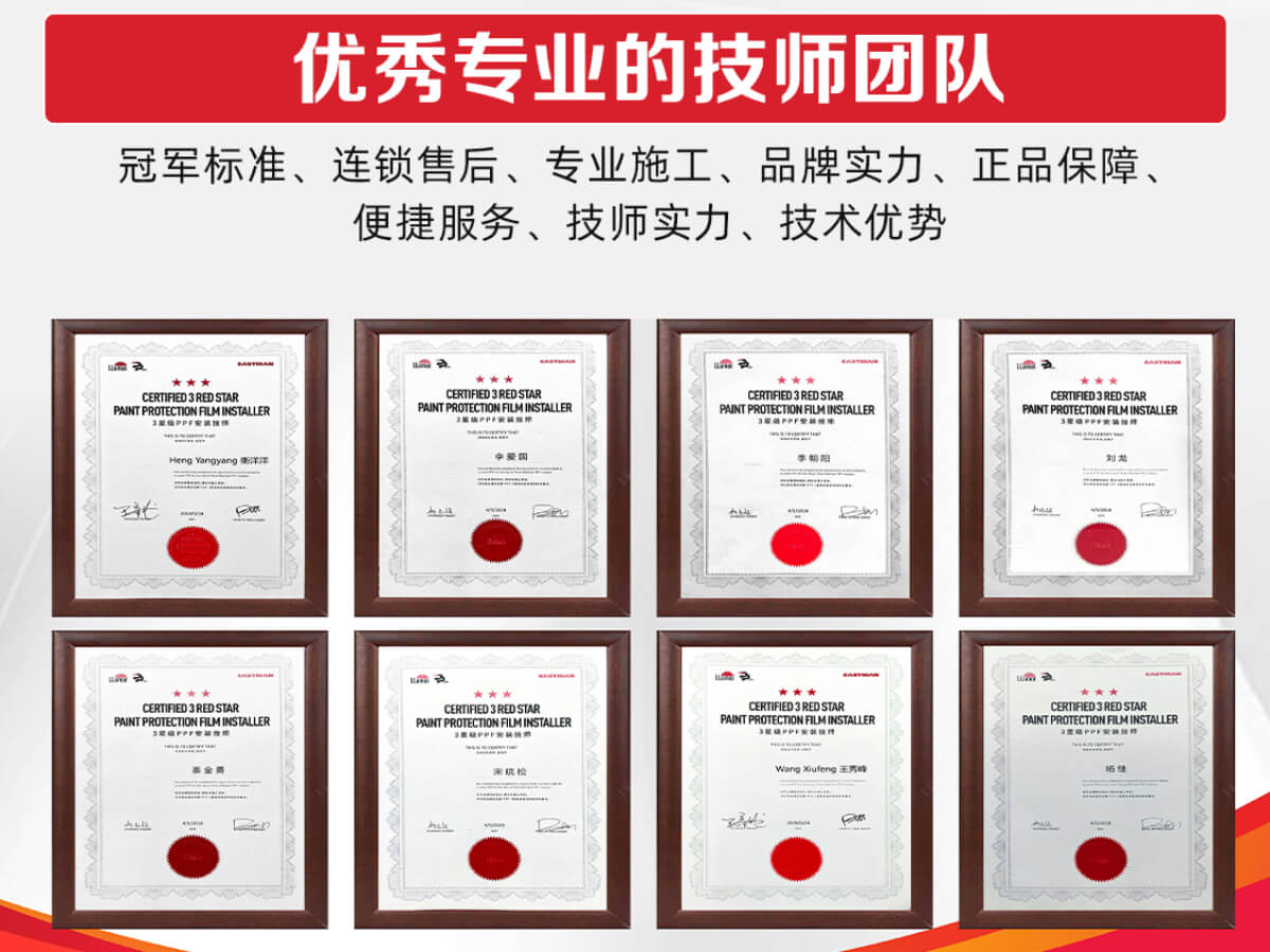 3、施工技术和经验:技师的经验和技术水平直接影响到贴膜的效果和耐用性。例如,车艺尚西安龙膜旗舰店的技师均由龙膜总部统一配送,平均工龄长达9年,拥有数千辆车的施工经验 。